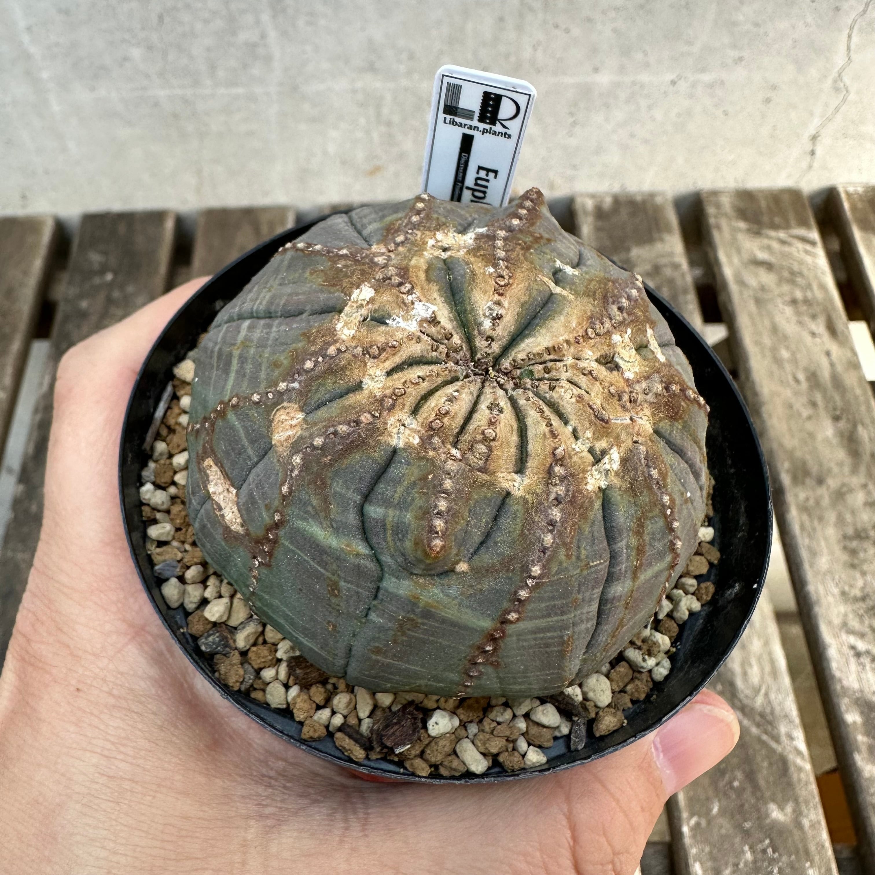 【品種説明】南アフリカ原産のユーフォルビアです。現地では夏は最低15度〜最高36度が平均的な気温の幅で、冬は最低4度〜最高9度の環境で自生しております。この夏に雨が降り、月の平均降水量は25〜30mm。逆に冬の月の平均降水量は3mmと非常に少ない環境です。