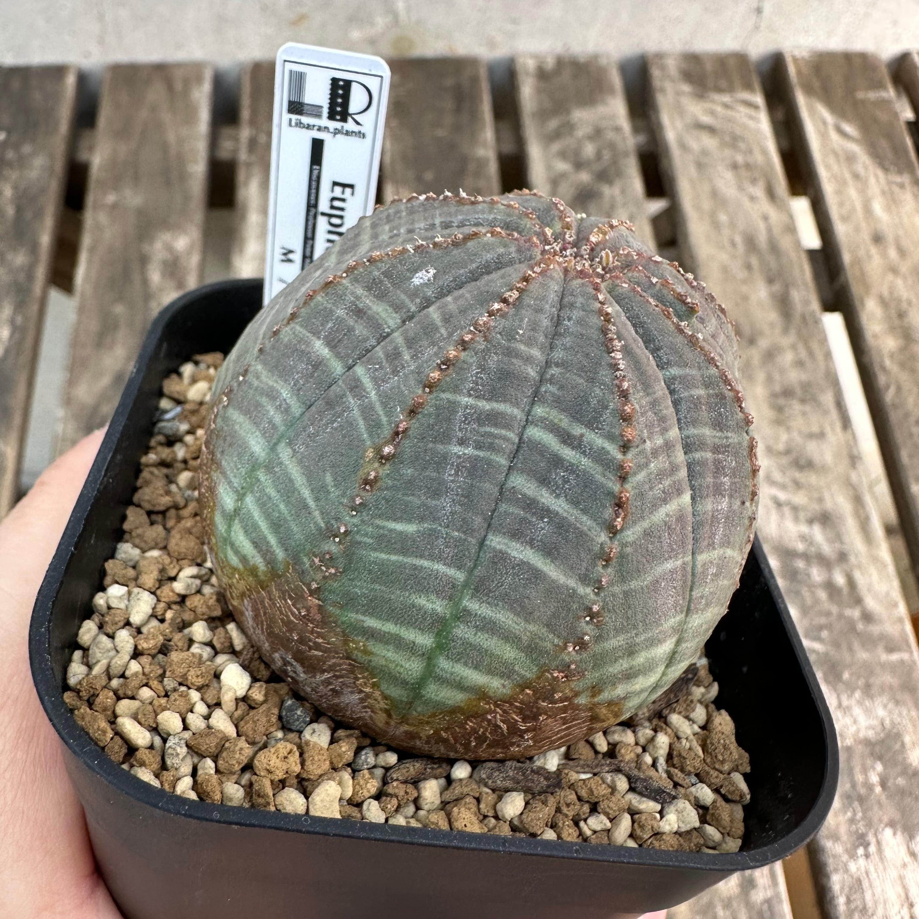 【品種説明】南アフリカ原産のユーフォルビアです。現地では夏は最低15度〜最高36度が平均的な気温の幅で、冬は最低4度〜最高9度の環境で自生しております。この夏に雨が降り、月の平均降水量は25〜30mm。逆に冬の月の平均降水量は3mmと非常に少ない環境です。