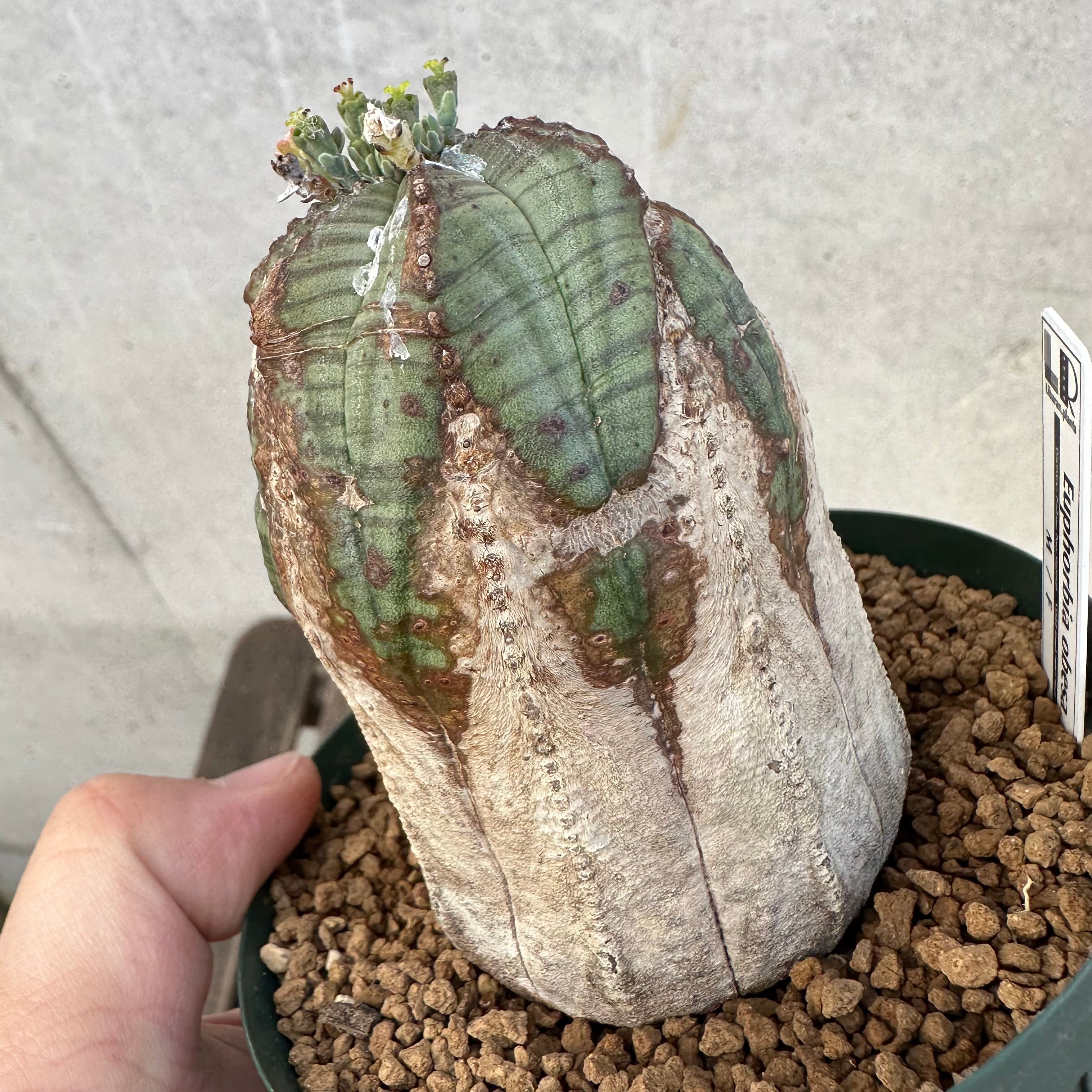 【品種説明】南アフリカ原産のユーフォルビアです。現地では夏は最低15度〜最高36度が平均的な気温の幅で、冬は最低4度〜最高9度の環境で自生しております。この夏に雨が降り、月の平均降水量は25〜30mm。逆に冬の月の平均降水量は3mmと非常に少ない環境です。
