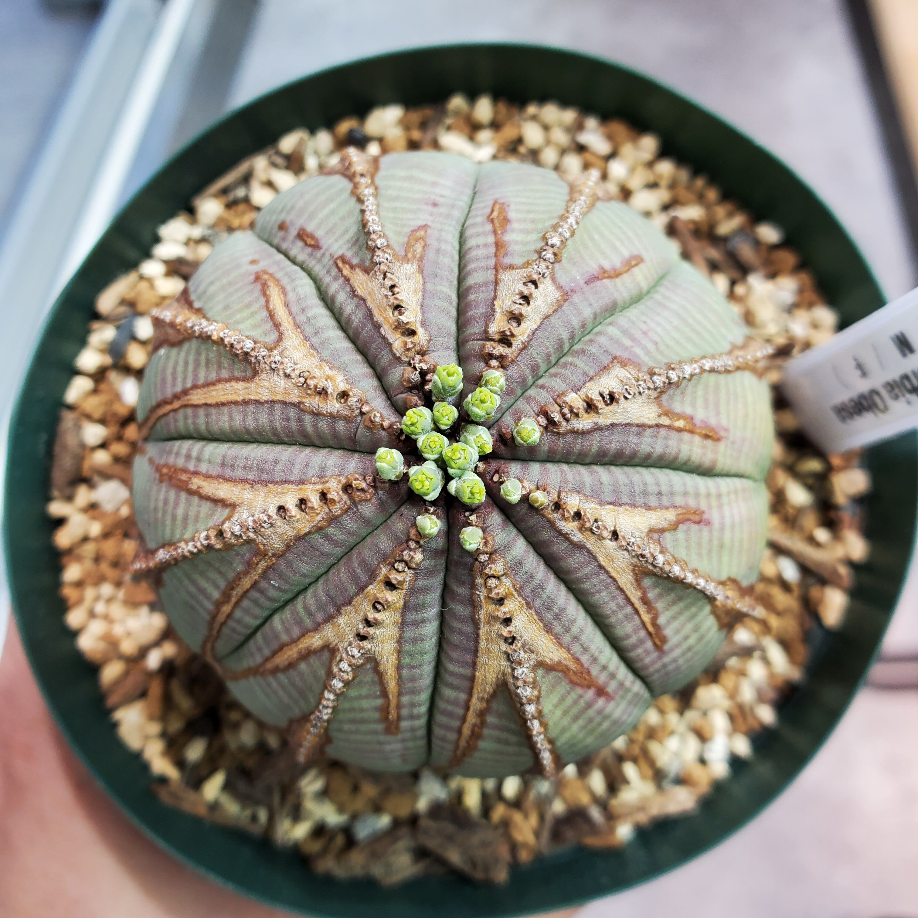 【株特徴】スペイン産のオベサです。株元から綺麗に成るCROWNタイプの木質化に、矢先のような模様が入る最高に綺麗な株です。