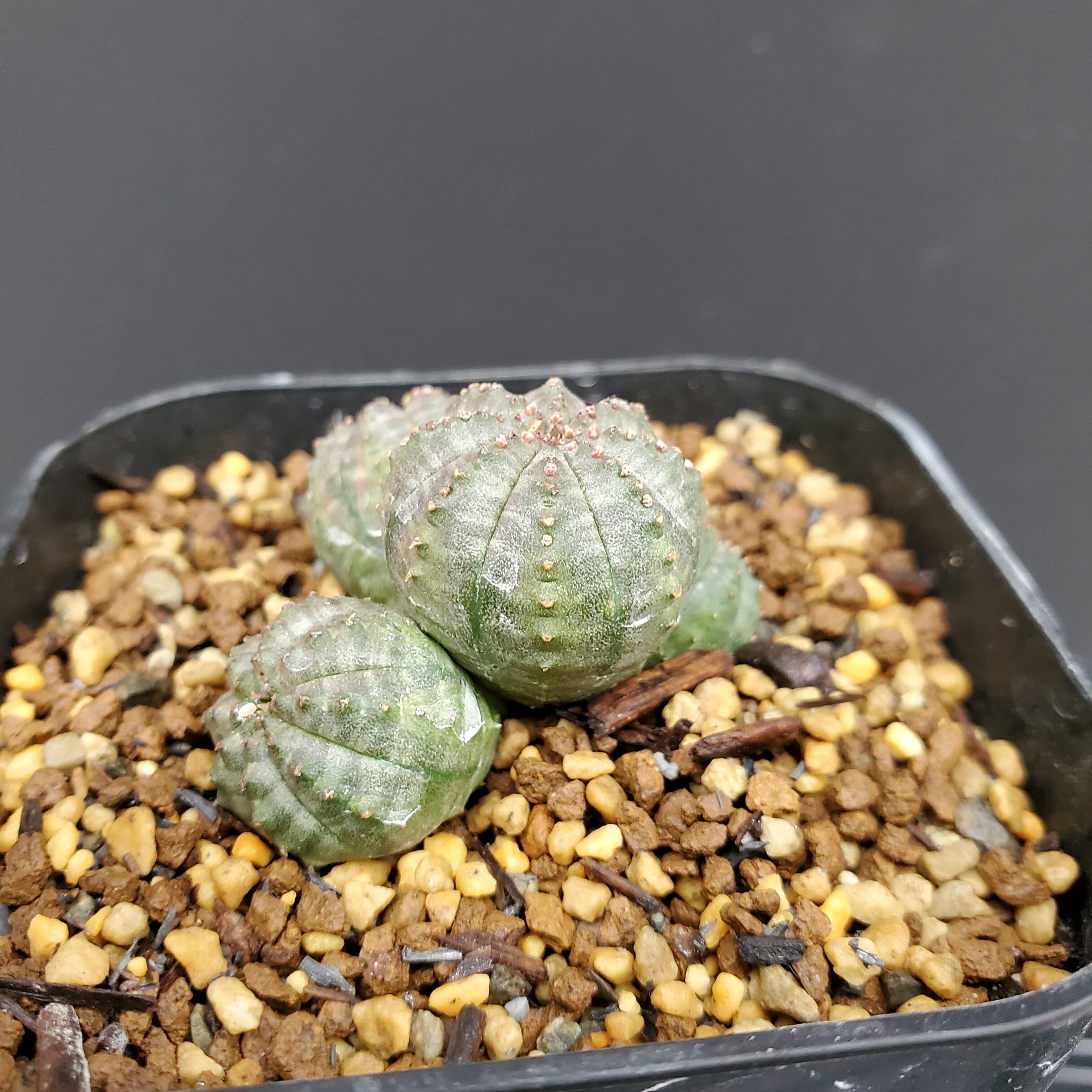 【品種説明】南アフリカ原産のユーフォルビアです。現地では夏は最低15度〜最高36度が平均的な気温の幅で、冬は最低4度〜最高9度の環境で自生しております。この夏に雨が降り、月の平均降水量は25〜30mm。逆に冬の月の平均降水量は3mmと非常に少ない環境です。