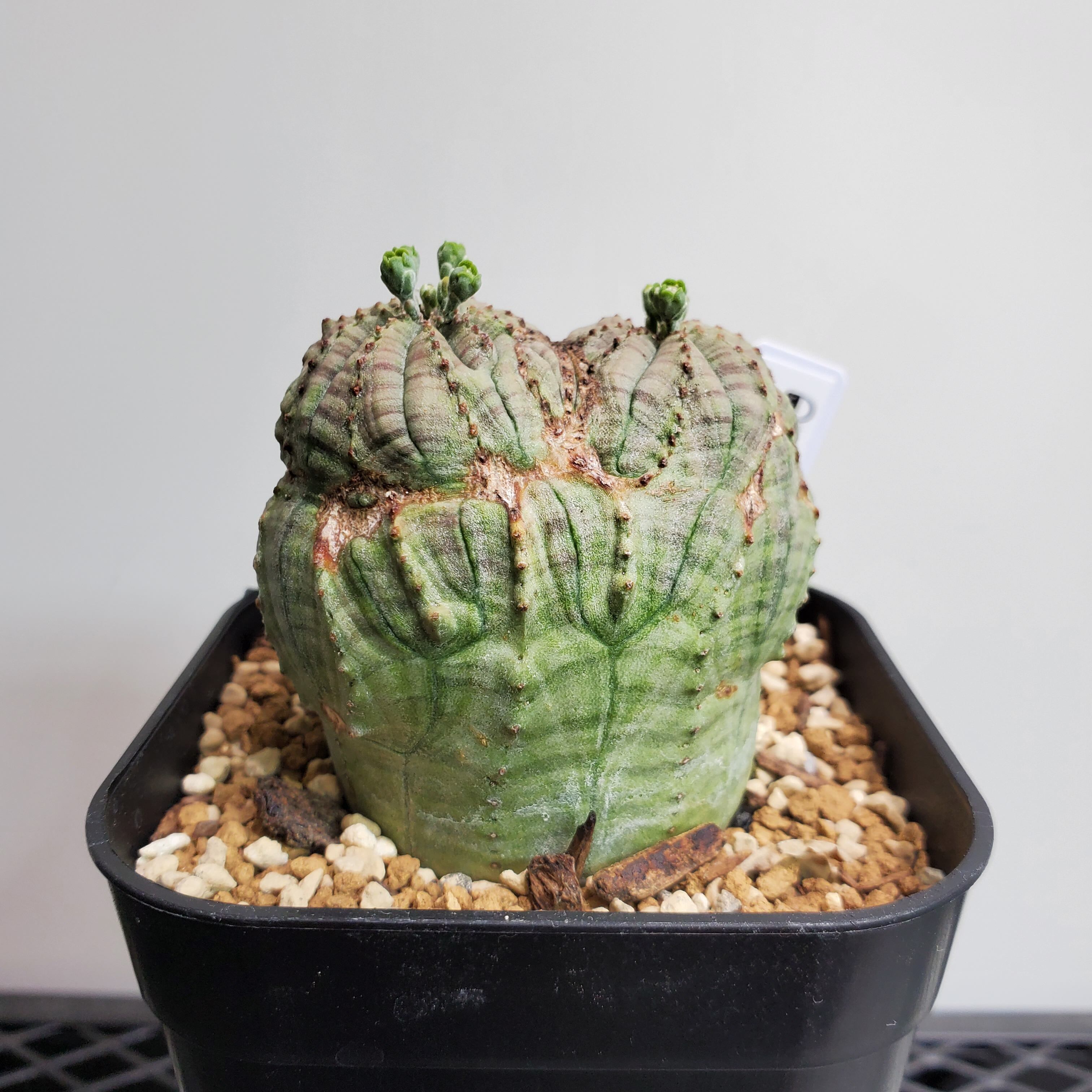 【品種説明】南アフリカ原産のユーフォルビアです。現地では夏は最低15度〜最高36度が平均的な気温の幅で、冬は最低4度〜最高9度の環境で自生しております。この夏に雨が降り、月の平均降水量は25〜30mm。逆に冬の月の平均降水量は3mmと非常に少ない環境です。